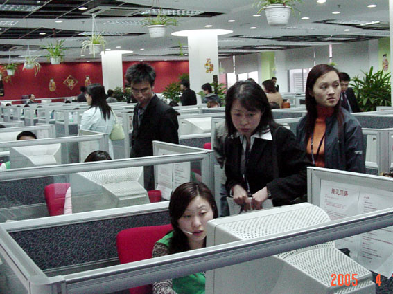 。。2005年4月12日,2005中國國際呼叫中心與客戶關(guān)系管理大會(huì)組織了呼叫中心現(xiàn)場參觀,第一參觀路線為世紀(jì)新元和盛大網(wǎng)絡(luò),第二參觀路線為招商銀行信用卡中心(CCCS認(rèn)證五星級(jí)呼叫中心)和平安財(cái)險(xiǎn),以下是相關(guān)圖片報(bào)道: