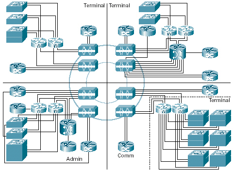 Catalyst 6500交換機(jī)的MPLS網(wǎng)絡(luò)。它可以為該機(jī)場(chǎng)的內(nèi)部網(wǎng)絡(luò)、每個(gè)航空公司的網(wǎng)絡(luò)和其他租戶服務(wù)提供第三層劃分。該MPLS網(wǎng)絡(luò)還部署在一個(gè)采用了Cisco