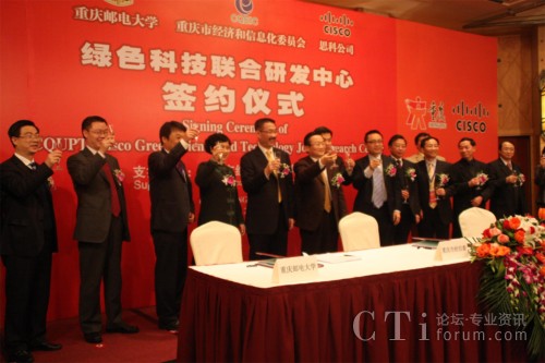 CTI論壇(ctiforum)2月3日消息(記者 潘婷):2月3日上午,思科公司與重慶郵電大學(xué)正式簽訂合作協(xié)議,共建“重慶郵電大學(xué)-思科綠色科技聯(lián)合研究實驗室”。“綠色科技聯(lián)合研究實驗室”的成立是思科履行其致力于推動中國創(chuàng)新和可持續(xù)發(fā)展承諾的重要舉措。此次合作中雙方將共同推動下一代互聯(lián)網(wǎng)、傳感器網(wǎng)絡(luò)以及綠色科技等領(lǐng)域的研發(fā),推進(jìn)應(yīng)用推廣和產(chǎn)業(yè)化發(fā)展,實現(xiàn)產(chǎn)學(xué)研一體化,幫助和支持重慶本土企業(yè)提高綠色科技創(chuàng)新的素質(zhì)和能力,進(jìn)而支持中國發(fā)展綠色經(jīng)濟(jì)、節(jié)能減排的長期戰(zhàn)略。