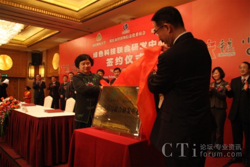 重慶市副市長童小平與思科公司全球副總裁林正剛出席簽約儀式,并共同為“綠色科技聯(lián)合研究實驗室”揭牌。儀式由重慶市政府人員副秘書長廖慶軒主持,重慶市經(jīng)濟(jì)與信息化委員會黨組書記沐華平副主任作為見證人,與重慶郵電大學(xué)校長陳流汀教授、思科中國研發(fā)中心總經(jīng)理常詢傳博士共同在協(xié)議書上簽字,思科公司和市級相關(guān)部門負(fù)責(zé)人參加了簽約儀式。