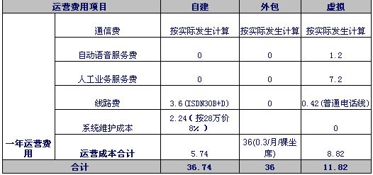 注1:自建和外包呼叫中心按目前市場(chǎng)平均價(jià)計(jì)算。虛擬呼叫中心按聯(lián)通標(biāo)準(zhǔn)資費(fèi)計(jì)算。外包坐席按裸坐席計(jì)算。