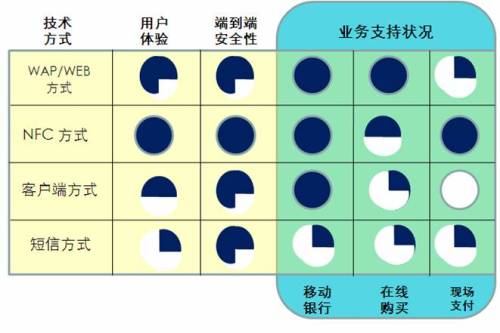 從用戶體驗(yàn)來(lái)看,由于傳統(tǒng)的互聯(lián)網(wǎng)已經(jīng)能夠提供便捷的網(wǎng)銀業(yè)務(wù)、在線購(gòu)物服務(wù),因此短信、WAP/WEB,甚至客戶端方式將只是不便情形下的補(bǔ)充手段——特別是適合一些不便通過(guò)PC上網(wǎng)的學(xué)生或流動(dòng)群體。而NFC方式由于具備很高的安全性和便利性,對(duì)年輕用戶來(lái)說(shuō)也很有時(shí)尚味道,因此被人為是未來(lái)移動(dòng)支付的發(fā)展主流。