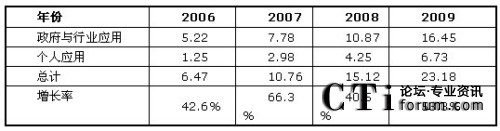 如圖1所示,F(xiàn)rost & Sullivan認為,由于個人應用領域的商業(yè)模式還未成熟,產(chǎn)業(yè)鏈整合仍在進行中,目前移動位置服務應用仍然以政府和企業(yè)應用為主。如圖4所示,2009年個人應用市場規(guī)模為6.73億元,而政府與行業(yè)應用市場達到16.45億元,兩者總計達23.18億元,同比去年增長了53.3%。