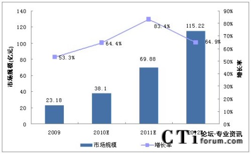 圖:2009-2012中國移動位置服務市場規(guī)模預測(億元)