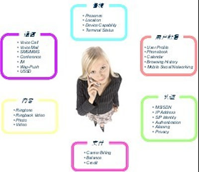 三是開放電信能力,運(yùn)營商手里有很多得天獨(dú)厚的資源,如SMS、MMS、語音等可靠的通信服務(wù),用戶數(shù)據(jù),情境,認(rèn)證等。這些是運(yùn)營商獨(dú)有的資源,在此基礎(chǔ)上開發(fā)出來的應(yīng)用也是獨(dú)一無二的。