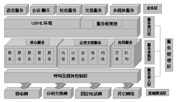 以XML為基礎(chǔ)的USML(統(tǒng)一服務(wù)的建模語言),是音信互動平臺的核心技術(shù),通過對服務(wù)的抽象,實現(xiàn)了業(yè)務(wù)和承載的分離。