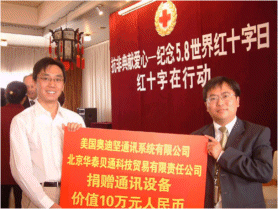 4月,SARS在北京肆無忌彈的橫行,其它國家和地區(qū)也都不同程度地受到SARS的侵害,給人民的生活和工作帶來了極大的影響,人們的身體健康和生命安全受到了威脅。中國紅十字會廣大工作人員對此次疫情迅速響應(yīng),為了支持中國中國紅十字會總開展SARS疫情的救助和捐贈工作,幫助其通過現(xiàn)代化的通訊手段快速準(zhǔn)確的進(jìn)行話務(wù)處理,以便更好地保護(hù)人民的生命和健康,4月30日,奧迪堅(jiān)通訊系統(tǒng)(上海)有限公司聯(lián)合北京華泰貝通科技貿(mào)易有限責(zé)任公司向中國紅十字會總會捐贈了價(jià)值約10萬余人民幣的呼叫中心系統(tǒng),軟件以及相關(guān)服務(wù),以實(shí)際行動幫助中國紅十字會總會抗擊SARS。