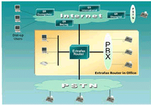 對于普通的傳真機(jī),ExtraFax Router是更合算的選擇。它不僅不需要額外的網(wǎng)關(guān)設(shè)計,而且它還可以自動計算長途計費(fèi)單。最重要的是它可以自動尋找最佳路徑 (即最節(jié)省的方式) 通過Internet/Intranet發(fā)送傳真,同時ExtraFax Router基于DID/DTMF/CSID/PORT/Channel的自動分發(fā)到個人的傳真信箱也降低了人工管理的費(fèi)用并能實(shí)現(xiàn)傳真的安全性。