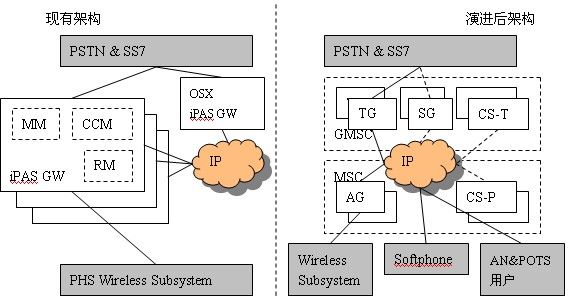 GW軟件改造而來,只需新增CS-P即可?偟膩碚f,核心網的演進只是增加CS-P、擴容CS-T、原有的iPAS GW軟件升級為TG/AG,就可以建立其一個具有多種終端接入能力的開放性多媒體VoIP移動軟交換網絡,而原有的PHS系統功能又不會受到影響。