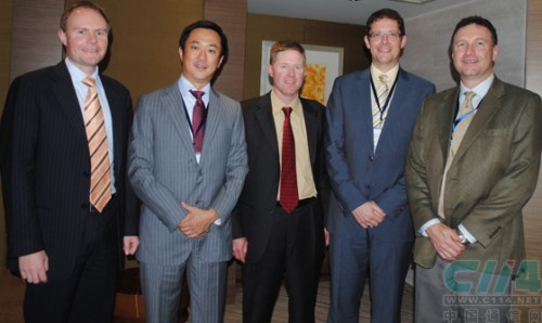 從左到右依次為:亞太區(qū)高級(jí)副總裁Jason Stirling、大中華區(qū)總經(jīng)理鄭裕慶、專業(yè)服務(wù)部副總裁Brett Phaneuf、企業(yè)產(chǎn)品副總裁Daniel S Fauldner、亞太區(qū)銷售工程師高級(jí)主管Stuart Sharpe