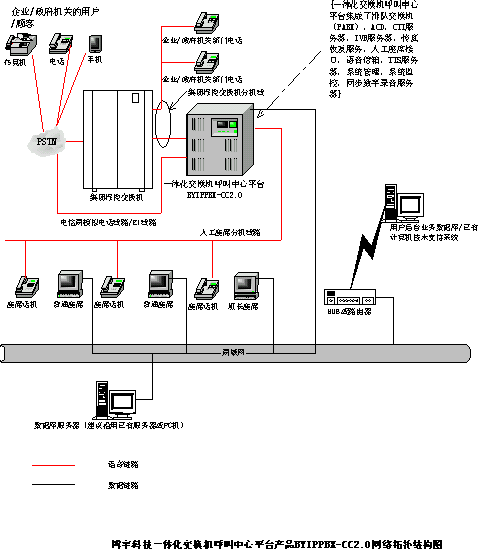 深圳博宇科技一體化交換機呼叫中心平臺產(chǎn)品BYIPPBX-CC2.0的呼叫中心系統(tǒng)網(wǎng)絡拓撲結(jié)構(gòu)如下: