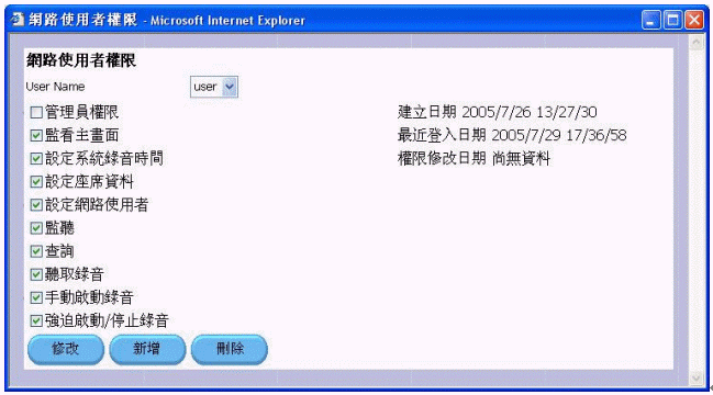 - 使用者操作權(quán)限可由上一級使用者設(shè)定,登入、注銷皆有密碼管制,且操作內(nèi)容皆有系統(tǒng)紀(jì)錄。