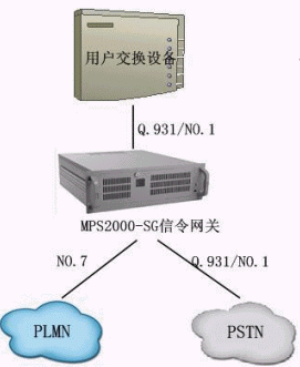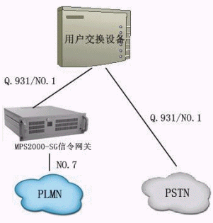 用戶原有的交換設(shè)備不做任何改動,只將原有的中繼通過原有信令(Q.931/NO.1)與信令網(wǎng)關(guān)對接,再通過信令網(wǎng)關(guān)分別以不同的信令與PSTN和PLMN對接。