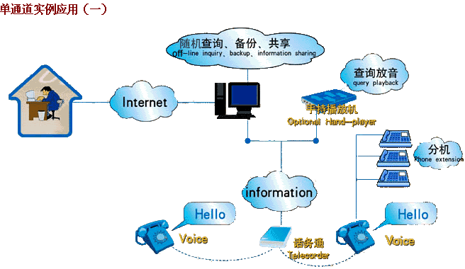 錄音記錄應當能夠方便地通過多種途徑回放,實現對錄音記錄資料的利用,這也是用戶配置電話錄音系統的最主要目的;胤趴梢酝ㄟ^我們公司開發(fā)生產的選件手持播放器回放,通過網絡回放,通過聲卡在其它計算機上回放等多種方式來實現。