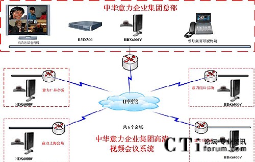 具體配置如下: 在中華意力企業(yè)集團配置RMX508C,所有會場配置HDX6000V及一臺領(lǐng)導桌面終端VVX1500