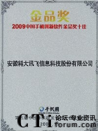 科大訊飛獲“2009中國(guó)手機(jī)創(chuàng)新軟件金品獎(jiǎng)十佳”企業(yè)獎(jiǎng)