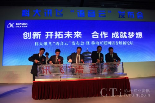 CTI論壇(ctiforum)10月29日消息(記者 潘婷婷): 2010年10月28日,“科大訊飛‘語音云’發(fā)布會暨移動互聯(lián)網(wǎng)語音創(chuàng)新論壇”在北京香格里拉飯店隆重舉行?拼笥嶏w作為中國語音產(chǎn)業(yè)領(lǐng)導者,在業(yè)界率先推出“訊飛語音云”,對于促進國家新近確定的七大戰(zhàn)略新興產(chǎn)業(yè)之一的“新一代信息技術(shù)”發(fā)展具有重大意義,將推動移動互聯(lián)網(wǎng)邁入語音時代,創(chuàng)新無限豐富的應用、創(chuàng)造廣闊的市場藍海。因此,此次發(fā)布會得到了各界的高度關(guān)注,各相關(guān)政府部門領(lǐng)導,聯(lián)想、騰訊、愛國者、優(yōu)視科技、播思通訊等各行業(yè)及移動互聯(lián)網(wǎng)領(lǐng)軍企業(yè)的代表,媒體界朋友,匯聚一堂、共襄盛舉,并就移動互聯(lián)網(wǎng)與語音產(chǎn)業(yè)的相互融合、創(chuàng)新發(fā)展、合力共贏進行了深入熱烈的探討。