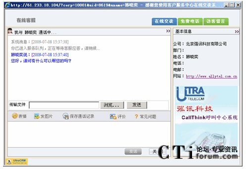 訪客可以通過點(diǎn)擊網(wǎng)站的 “客服”鏈接自動選擇交談對象或點(diǎn)擊“客服人員”進(jìn)行交談。