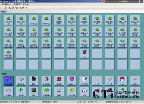 調(diào)度員通過觸摸屏(或者鍵盤鼠標)控制操作調(diào)度系統(tǒng),操作臺可以使用12個功能頁頁面。每個頁面共有22個功能按鍵和55個調(diào)度業(yè)務(wù)按鍵,55個調(diào)度業(yè)務(wù)按鍵可以根據(jù)具體調(diào)度業(yè)務(wù)需要靈活地編輯設(shè)置成直通呼叫鍵或組呼鍵。