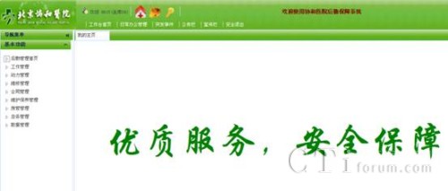 登錄后的后勤保障管理系統(tǒng)主頁面,左側(cè)為系統(tǒng)功能樹形結(jié)構(gòu)圖。