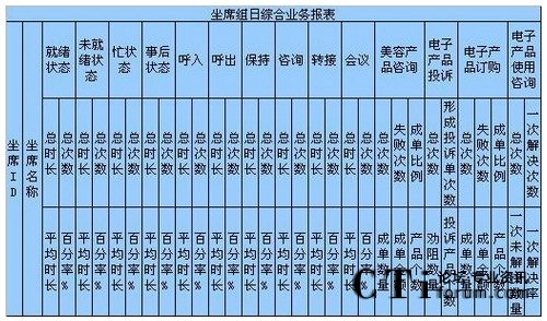 b)其它時間,報表在CTI中,各種統(tǒng)計指標(biāo)都有,每天、每月、每季度、每年、按組、按技能,平均、總計、總合、最大、最小數(shù)據(jù)比較的表格、圖表,一應(yīng)俱全;
