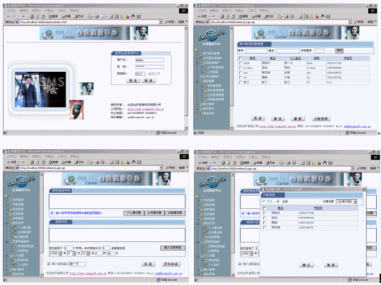 企業(yè)里的每個(gè)用戶要實(shí)現(xiàn)短信發(fā)送,僅需一臺電腦,然后利用瀏覽器就可以實(shí)現(xiàn)分組發(fā)送(如:會議通知、緊急通知)、定時(shí)群發(fā)(如:提醒短信、恭賀短信、祝福短信)、以及接收工作情況匯報(bào)短信等,系統(tǒng)提供通訊薄管理,可編輯常用短語。服務(wù)器端支持多個(gè)GSM設(shè)備群發(fā),滿足不同發(fā)送短信量的需要?煨┫螺d系統(tǒng)的動畫演示,新增功能多多。!