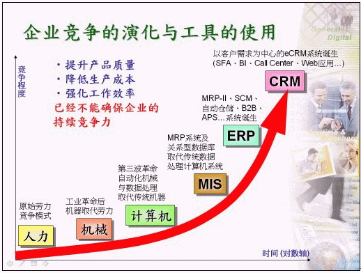 過(guò)去企業(yè)為取得同業(yè)間之競(jìng)爭(zhēng)優(yōu)勢(shì),無(wú)不絞盡腦汁針對(duì)『產(chǎn)品質(zhì)量』、『生產(chǎn)成本』及『工作效率』等作為主要改善目標(biāo),除了從本身管理制度的檢討改進(jìn)外,同時(shí)也積極運(yùn)用現(xiàn)代信息科技的力量,規(guī)劃出適合自己的企業(yè)e化版圖,以因應(yīng)全球化競(jìng)爭(zhēng)時(shí)代的來(lái)臨,在此同時(shí)許多信息系統(tǒng)也逐步推動(dòng)導(dǎo)入企業(yè)內(nèi)部,包括:早期的MIS系統(tǒng)、近期的ERP系統(tǒng)、甚或電子簽核系統(tǒng)等,主要目的為提升內(nèi)部工作效率、節(jié)省內(nèi)部生產(chǎn)成本等作準(zhǔn)備,以『節(jié)流』為目標(biāo)強(qiáng)化企業(yè)自身的競(jìng)爭(zhēng)能力。