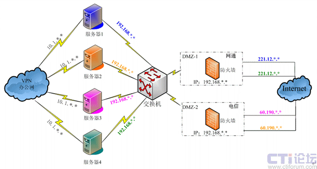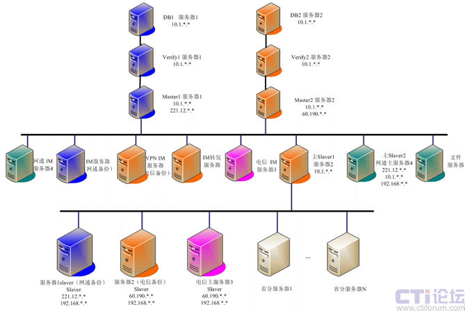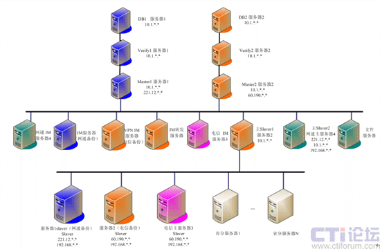 系統(tǒng)平臺采用集群化部署,實現(xiàn)跨網(wǎng)絡分布式,從而在應用中實現(xiàn)南北網(wǎng)通電信的互聯(lián)互通,以及專網(wǎng)用戶的無障礙接入,實現(xiàn)方式如下圖所示: