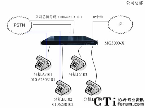 IPPBX MG3000-X專用線應用解決方案