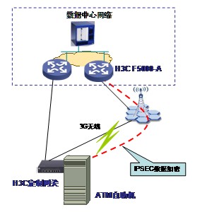 上海電信根據(jù)交通銀行的實(shí)際情況,提出了“線路+設(shè)備+業(yè)務(wù)”一體化的融合解決方案,采用H3C提供的商務(wù)領(lǐng)航定制網(wǎng)關(guān)和IPSec VPN解決方案構(gòu)建。 通過H3C Navigator B1-2+定制網(wǎng)關(guān),將ATM自助機(jī)通過有線主鏈路與總部數(shù)據(jù)中心安全互聯(lián),實(shí)現(xiàn)關(guān)鍵數(shù)據(jù)的安全傳輸,同時(shí)借由定制網(wǎng)關(guān)的3G接口,實(shí)現(xiàn)3G鏈路和有線主鏈路的相互備份。該方案保障了ATM自助機(jī)數(shù)據(jù)的安全傳輸,有效降低了交通銀行的運(yùn)營成本,提升了效率。