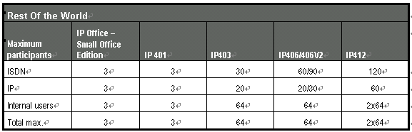 下列表格是不同型號IP Office的不同接口形式的最大會議容量: