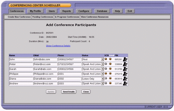 作為電話會議的補(bǔ)充,會議主席可以建立基于web的應(yīng)用。通過這樣的web接口,會議主席和與會人員不僅看到與會人員的狀態(tài),還可以設(shè)置聽眾只聽,聽和說,可以看到web界面的權(quán)限。web