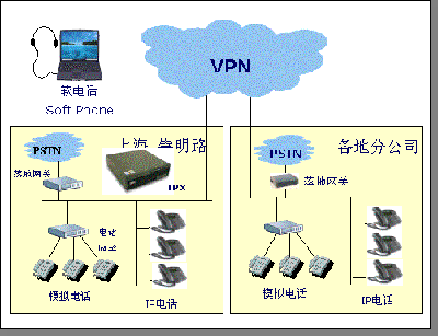 虛擬辦事處/分公司: 企業(yè)沒有常駐辦公機(jī)構(gòu)的地區(qū),可以通過 IPX 系統(tǒng)將用戶的電話咨詢通過 INTERNET 傳輸?shù)娇偛刻幚。?dāng)?shù)卦O(shè)置一套網(wǎng)絡(luò)電話終端