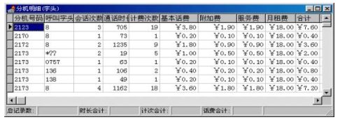 2) 在語音提示下,用戶使用電話可查到每月的各項(xiàng)綜合費(fèi)用,例如市話費(fèi)、本地網(wǎng)費(fèi)、長話費(fèi)、固定費(fèi)、其它和總費(fèi)用等。