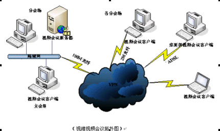 保險公司在公司總部搭建視頻會議服務器,總公司與各分公司通過公司內部網絡連接,其視頻會議系統(tǒng)拓撲圖如下: