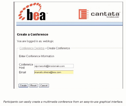 在上述應(yīng)用中,一用戶建立了一個多媒體會議會話。該會議的進(jìn)行一如我們平常所熟悉的基于運(yùn)營商的語音會議系統(tǒng)的商務(wù)會議。不同的是,它使用了基于Web的圖形交互, 使得用戶可以建立會議時間以及受邀請的參與人的列表,此外, 該應(yīng)用還發(fā)出了一封含有該會議相關(guān)的聯(lián)絡(luò)信息的電子郵件。并且,它還充分利用了Cantata SnowShore 媒體服務(wù)器的高級多媒體功能為會議參與人提供豐富的多媒體體驗。