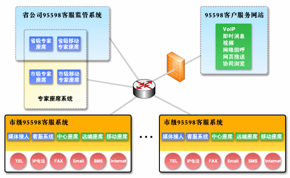 在電力客戶服務(wù)中心系統(tǒng)解決方案中,我們采用了更加先進(jìn)的第四代呼叫中心系統(tǒng)作為客服系統(tǒng)的平臺(tái)?梢詫(shí)現(xiàn)的客戶聯(lián)絡(luò)方式已經(jīng)不僅僅局限于傳統(tǒng)的語音和傳真的呼叫形式,網(wǎng)絡(luò)電話、網(wǎng)絡(luò)傳真、Email、短消息、即時(shí)消息、互聯(lián)網(wǎng)應(yīng)用等都是與客戶聯(lián)絡(luò)的重要方式,涉及到的媒體載體也不僅是PSTN,還有基于VoIP技術(shù)的現(xiàn)代網(wǎng)絡(luò)、無線網(wǎng)絡(luò)等;也就是說第四代呼叫中心系統(tǒng)是一個(gè)融合網(wǎng)絡(luò)、語音、數(shù)據(jù)庫(kù)、視頻和安全技術(shù)的綜合信息服務(wù)平臺(tái)。整個(gè)95598電力客戶服務(wù)系統(tǒng)是由呼叫中心子系統(tǒng)和業(yè)務(wù)處理子系統(tǒng)共同構(gòu)成。