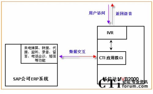 通過集成,不但可以實現與SAP公司ERP系統(tǒng)的實時數據傳輸,實現客戶管理、日常辦公,并且可使ERP系統(tǒng)上具有:點擊外呼、批量外呼、來電彈屏、收聽錄音、查看報表、監(jiān)控電話線路等更多增值功能,詳細接口內容見《MVB2000 WEB開發(fā)接口》。