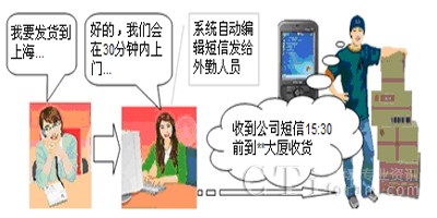 外勤短信通知?蛻綦娫捪聠,貨品規(guī)格重量記入數據庫,下單完畢,客服人員選擇片區(qū)取件員,輕輕一點,客戶資料及貨物資料全部發(fā)送至取件員手機,不會遺忘,不再混淆。