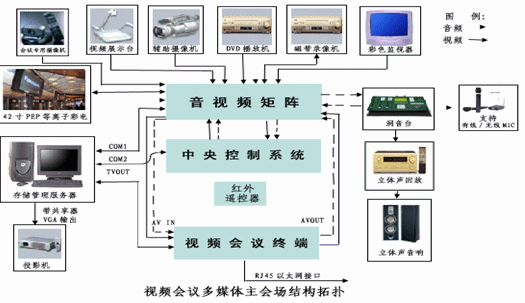根據(jù)貴單位的分布特點,視頻會議會議系統(tǒng)建立7個會場,其中主會場一個,設在大樓的會議室,分會場6個,設在各下屬單位會議室。傳輸信道采用系統(tǒng)內部的寬帶IP綜合網(wǎng)絡。