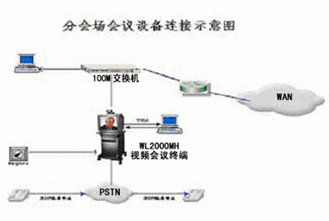 在各分會場,提供100M快速交換以太網(wǎng)端口連接分會場會議終端WL-2000MH,以上設備分別通過綜合信息網(wǎng)提供的100M快速交換以太網(wǎng)接入主會議系統(tǒng)網(wǎng)。另外,在分會場預留一條電話備份線路,也可以用音頻撥號方式撥入,用參加視頻會議。