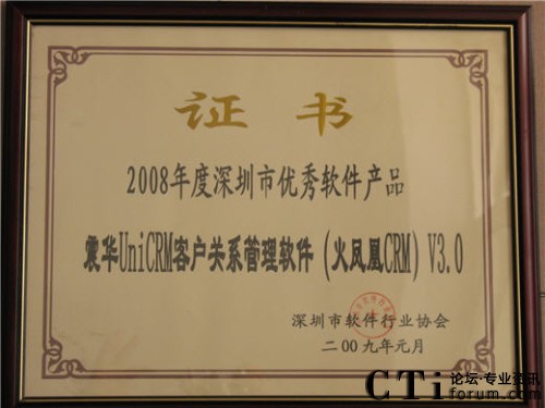 火鳳凰CRM軟件獲“2008年度深圳市優(yōu)秀軟件產(chǎn)品”稱號