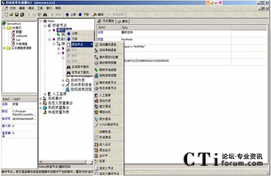 - MyCommAVS平臺(tái)提供自動(dòng)業(yè)務(wù)生成器(MyCommSCE)這一強(qiáng)大的開發(fā)工具,實(shí)現(xiàn)對自動(dòng)語音業(yè)務(wù)的編輯和管理。自動(dòng)業(yè)務(wù)流程編輯器(MyCommSCE)界面示意圖: