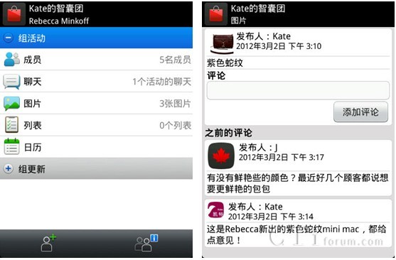 凱特周手袋為能迎合中國(guó)消費(fèi)者的品位需求,在引進(jìn)獨(dú)立設(shè)計(jì)師品牌的手袋時(shí),都要充分吸取分布于國(guó)內(nèi)各地的導(dǎo)購(gòu)人員的建議,這就形成了Kate極其信賴的智囊團(tuán)。然而,智囊團(tuán)的應(yīng)用卻極大的受到地域限制:當(dāng)Kate在美國(guó)決定是否引進(jìn)某款手袋時(shí),在北京的小J、在上海的小Q以及在深圳的小M很難及時(shí)的加入到討論中。直到她們?nèi)渴褂昧撕谳悄苁謾C(jī)和服務(wù),其中包括的一款即時(shí)通訊工具BlackBerry Messenger(BBM)為智囊團(tuán)發(fā)揮作用提供了便利的通訊條件。BBM支持不同國(guó)家運(yùn)營(yíng)商的黑莓用戶自由的互相添加為好友、聊天、分享圖片,其群組功能還支持分享語(yǔ)音文件、日歷和列表等。