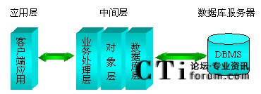 上面所示的體系是在三層結(jié)構(gòu)的基礎(chǔ)上提出來的,三層結(jié)構(gòu)技術(shù)將原來兩層結(jié)構(gòu)中客戶端的大量事務處理邏輯或數(shù)據(jù)庫服務器上的存儲過程放到中間層來實現(xiàn),從而減輕了客戶端和數(shù)據(jù)庫服務器端的負荷,并統(tǒng)一和規(guī)范了業(yè)務開發(fā)、管理和維護。