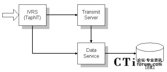 后臺程序使用Data Service 作為數(shù)據(jù)庫中間插件,TapNt(IVR)負責運行流程。TapNt(IVR)查詢數(shù)據(jù)要通過Data Service來進行。這項設置的目的在于使數(shù)據(jù)插件得到充分利用。當話務量增多時,可以多開幾個Data