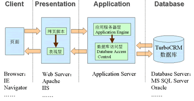 為了滿足移動辦公和分布式管理的需求,CRM系統(tǒng)將更多采用基于Browser-Server架構(gòu)的多層結(jié)構(gòu)。B/S結(jié)構(gòu)的特點是在客戶端使用標準的Web頁面瀏覽器(如Internet Explorer等),不需安裝特殊的應用程序,減少了升級和維護的難度;所有的業(yè)務(wù)數(shù)據(jù)都保存在Server端,確保了數(shù)據(jù)的安全;在通訊方面,由于使用標準的HTTP協(xié)議,使得系統(tǒng)可以輕松的實現(xiàn)移動辦公和分布式管理。另外為了系統(tǒng)功能的可擴展性,應該采用將數(shù)據(jù)庫、應用層及表現(xiàn)層分離的多層結(jié)構(gòu)。獨立的數(shù)據(jù)庫層便于支持多種數(shù)據(jù)庫系統(tǒng),將實現(xiàn)企業(yè)邏輯的應用層獨立使業(yè)務(wù)邏輯的更新和擴展更為方便,而當需要支持手機、PDA等新的客戶端設(shè)備時只要對表現(xiàn)層進行擴充就可以實現(xiàn)。同時,這種多層結(jié)構(gòu)也可以采用負載均衡與集群等技術(shù)實現(xiàn)系統(tǒng)的高可用性和性能的平滑擴展。