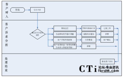 上述內(nèi)容敘述的是利用新的知識體系幫座席識別用戶的訴求,目前具有一定規(guī)模的呼叫中心已經(jīng)能夠做到每一通呼叫都可記錄對應(yīng)的通話原因,每個客戶投訴都有完整的處理流程,IT系統(tǒng)可以充分利用這些資源,在電話呼入的瞬間,啟動程序進行如下處理: