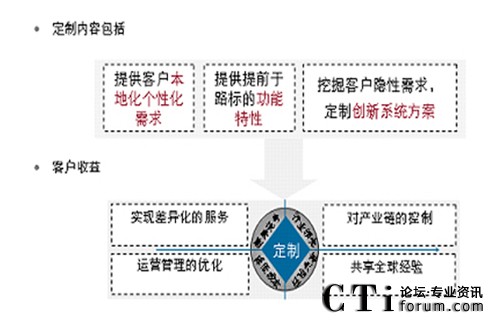 可定制服務(wù)主要體現(xiàn)在三個層面,一個是定制化服務(wù),通過全國10多個本地定制開發(fā)中心對客戶提供貼身二次開發(fā)服務(wù),支撐客戶更精細運營其客服系統(tǒng),另一個是定制化路標(biāo),定制化創(chuàng)新系統(tǒng)方案,即通過華為MKT、行銷、開發(fā)部門對客戶價值需求的深度分析,將客戶需求去粗存精、去偽存真、由表及里、由此及彼“定制提煉”出來,成為我們產(chǎn)品和方案的路標(biāo)。