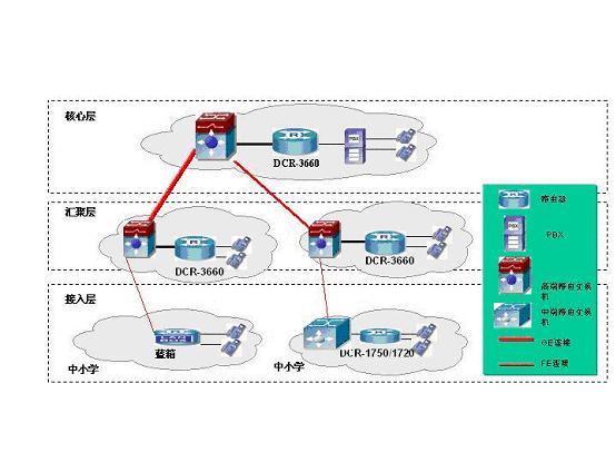 神州數(shù)碼用于市教委和區(qū)縣教委接入的DCR-3660、DCR-2600系列路由器全面支持H.323 VoIP功能,能夠靈活提供E&M、FXO、FXS等多種語音接口方便與各類PBX和傳統(tǒng)語音設(shè)備的連接,并提供等位撥號等針對教育網(wǎng)絡(luò)定制開發(fā)的特性功能,是構(gòu)建低成本、高性能教育系統(tǒng)IP語音網(wǎng)絡(luò)和數(shù)據(jù)網(wǎng)絡(luò)的可靠保證。